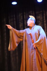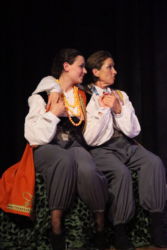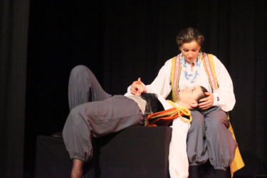 L’envie d’offrir également un spectacle visuel, avec des costumes réalisés spécialement par Erig Le Goff de la Compagnie Breizqu’île Théâtre (et formateur-scénographe à l’école de broderie d’art Pascal Jaouen), dans le cadre d’un partenariat de création amical et culturel en Finistère.